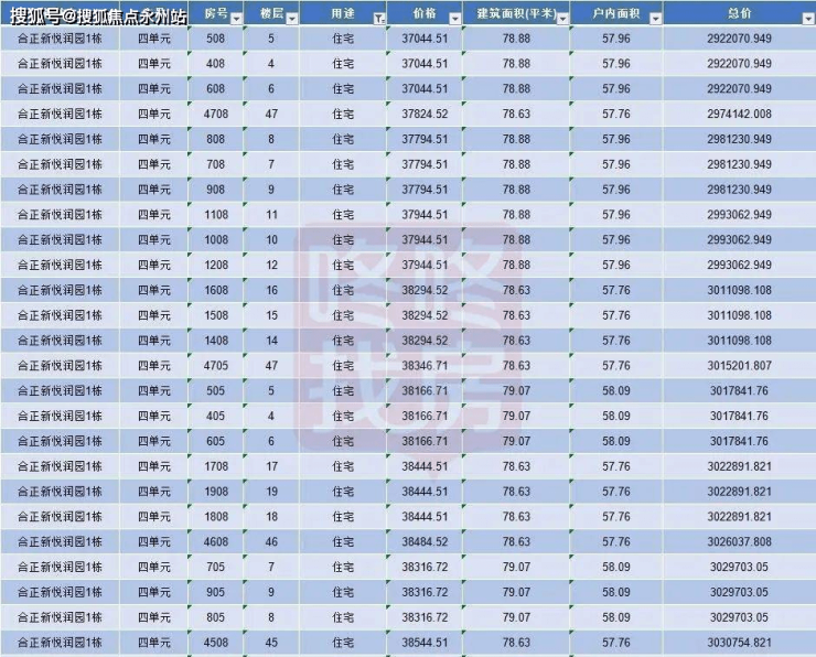 合正新悦部分备案价格(住宅)
