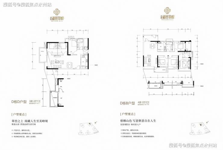 户型设计:主打大平层(182-260㎡)及复式(281-344㎡),层高3.1-3.5米,南北通透,赠送面积多(最高送200㎡)