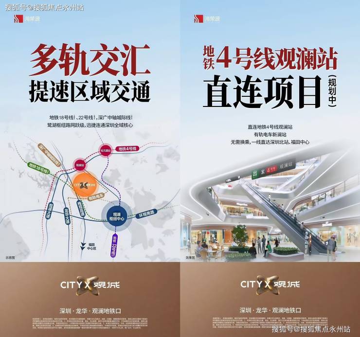 作为地铁4号线观澜站地铁上盖项目,业主步行300-500米即可进站,10站可达深圳北站,16站直达福田CBD,通勤效率极高。规划中的地铁22号线鹭湖北站距项目约800米,预计2028年通车,未来将实现双轨交汇。