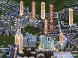 项目总占地面积约2.68万㎡,总建筑面积约23.6万㎡,计容建筑面积约20.87万㎡,容积率7.78,绿化率40.01%,共分2个地块开发,共由6栋18-57F住宅+2栋27-31F写字楼组成,南北区有风雨连廊连接,总规划1878户(可售商品房1278套),停车位1521个(占比1:0.81)。