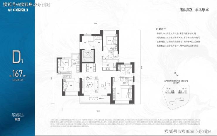167㎡-5房2厅3卫,折后总价1347-1421万/套,单价8.03-8.52万/㎡。