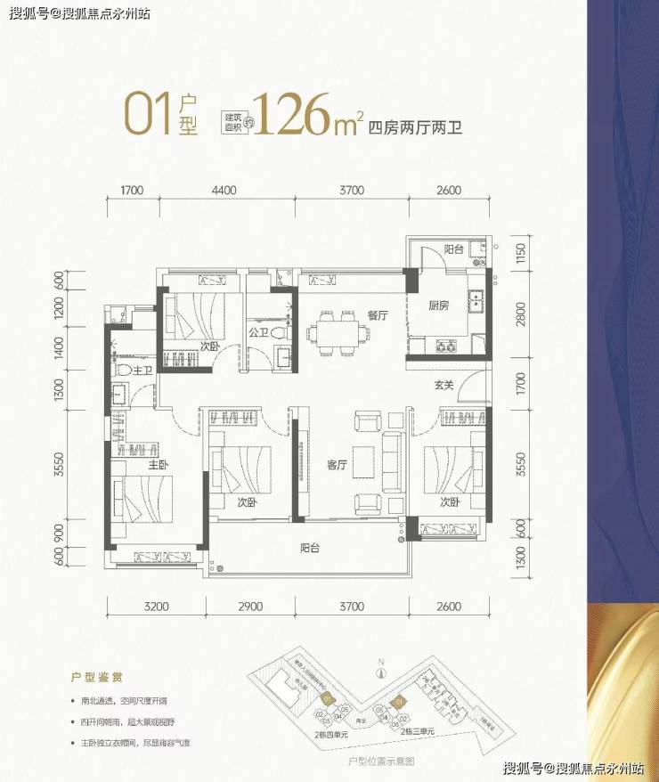126㎡户型结构上也没有明显槽点,独门独户、动静分区、横厅、餐/客厅独立、通透、双阳台、客厅宽景阳台,各功能间宽敞舒适等都是亮点。同时户型得房率93.11%,表现不差。