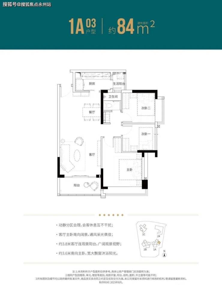 建面约82-89㎡ 舒居准现房,户型格局方正,约3.6-3.8米开阔客厅,使用率极高。