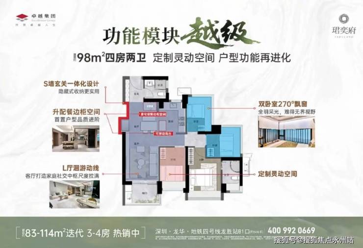 龙华【卓越珺奕府】凭借其高性价比和完善配套在市场中占据重要地位,项目二期正处于热销阶段,近期刚于2025年12月5日加推5栋新品。建面83㎡的3房2卫,92-114㎡的4房2卫户型,共322套房源,合同约定在2027年6月30日带精装交房。过来看房提前拨打开发商售楼处400电话:400-992-0669(无分机号,中介勿扰)