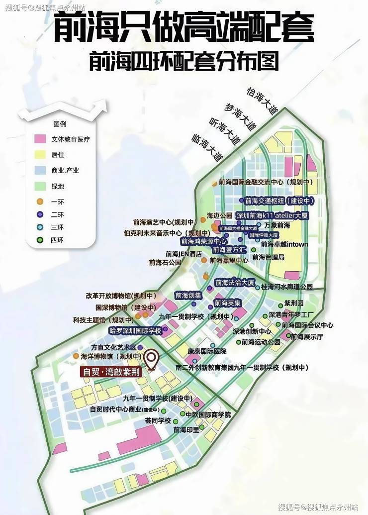 【自贸·湾啟紫荆府】整体占地面积约2.9平方公里土地,几乎占据了前海妈湾片区的一半土地,规划7大单元板块,是集办公、居住、商业、酒店、文化娱乐配套设施于一体,建筑面积超500万㎡的恢弘体量。