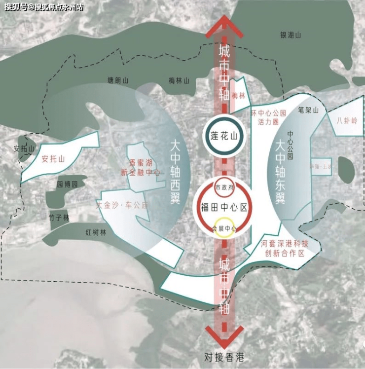 北邻香蜜湖新金融中心和车公庙2049未来之城,南接河套深港科创合作区