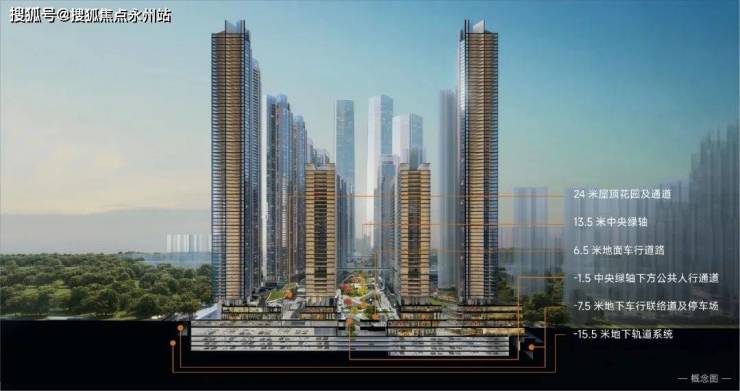 其中住宅125万㎡,商业、办公及旅馆业104.5万㎡,商务公寓112万㎡,公共配套设施6.5万㎡,容积率11.5。