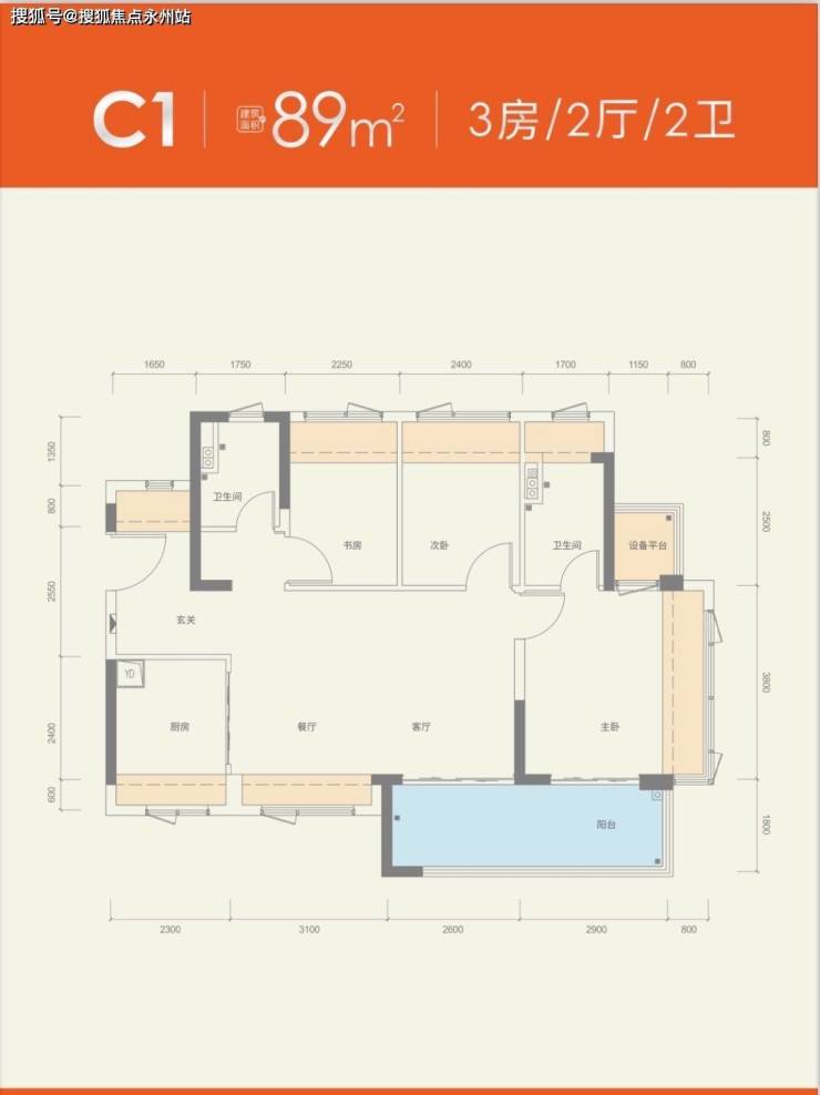 设备平台规划:每户标配约2㎡设备平台,可放置洗衣机、烘干机等家电,释放室内空间,89㎡户型主卧额外配备设备平台,满足高端家庭“双阳台”需求。