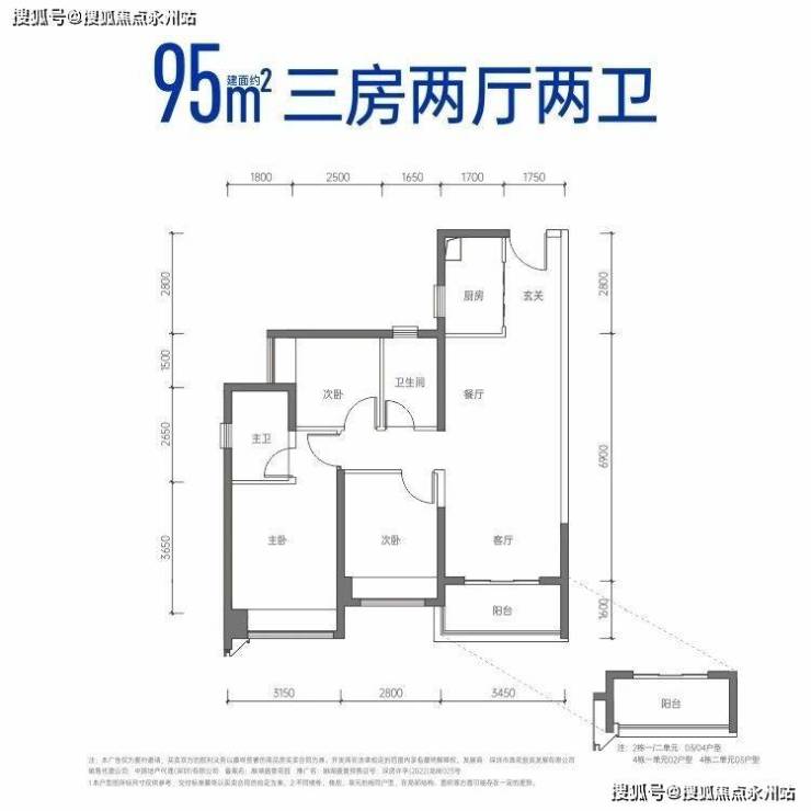 建面约95㎡三房两厅两卫
