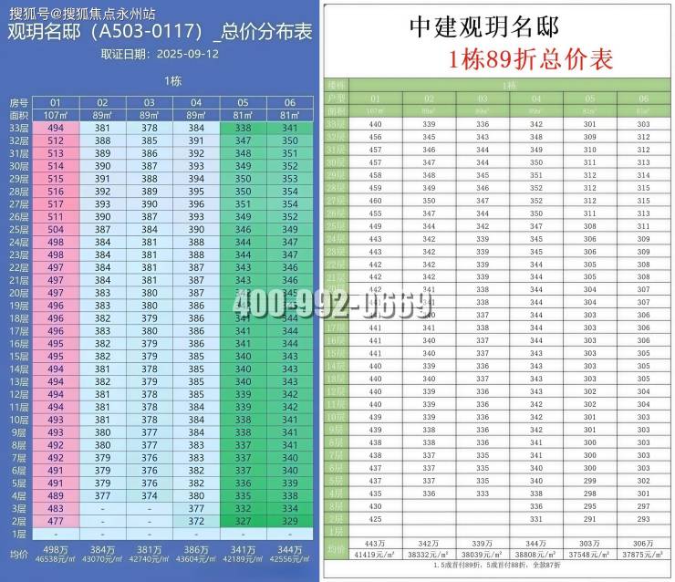 这次加推的1栋备案单价4.0-4.8万,均价约4.35万,总价327-517万,开盘按揭客户备案价打89折,折后均价3.8万,总价296-460万。