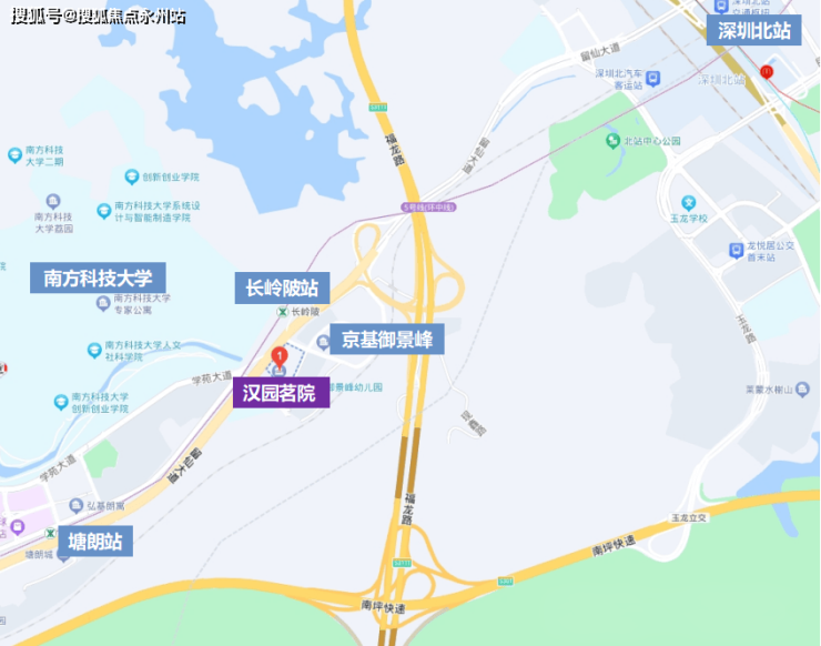 道路出行:汉园茗院周围有留仙大道、塘朗山隧道、南坪快速等快速路,交通更便利一些。