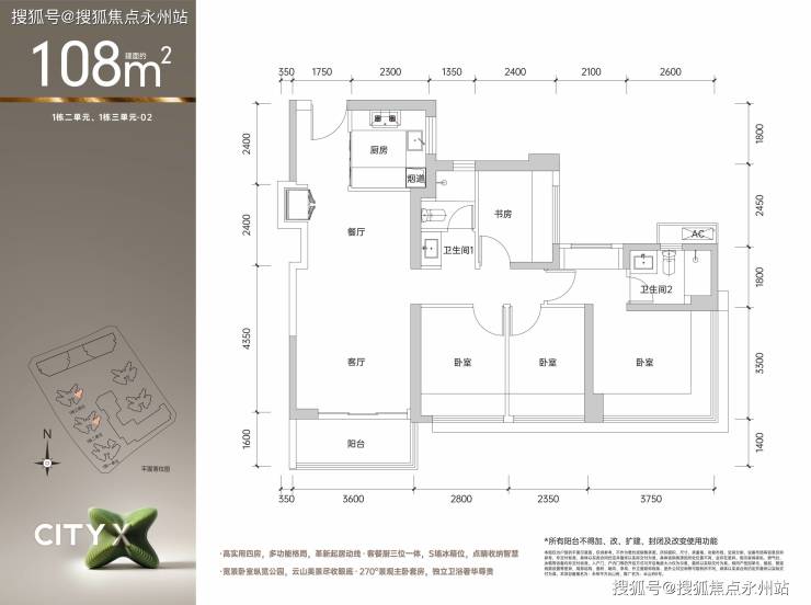 适合人群:追求舒适性的三口之家,东南/西南朝向户型性价比更高。