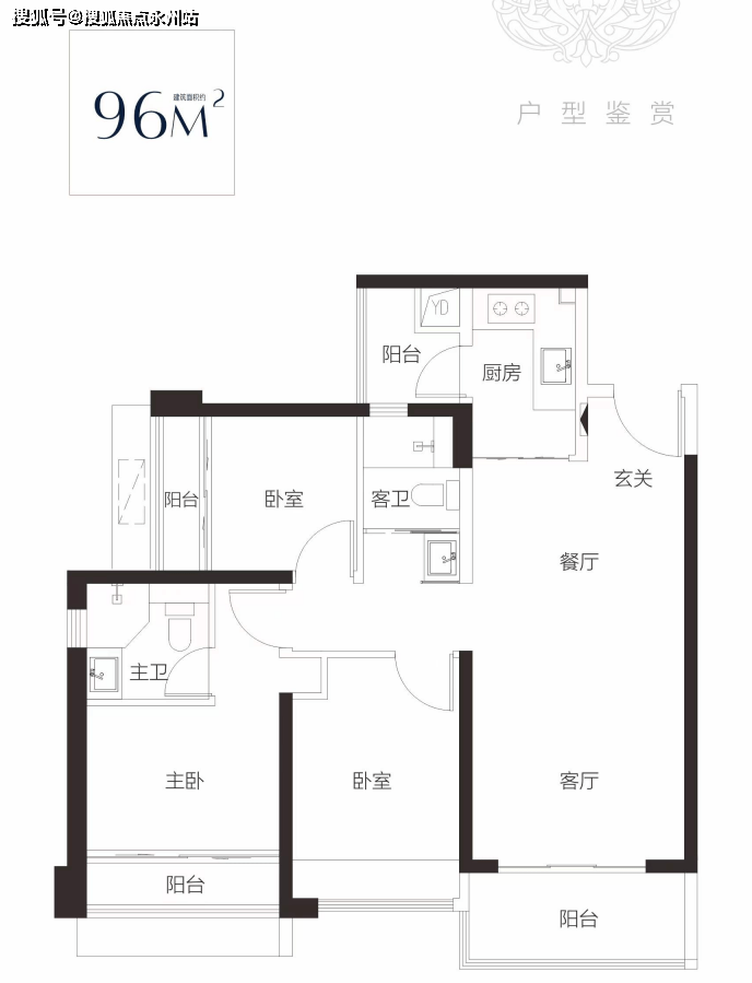 建面约96平三房两厅两卫,这也是一期的爆款户型。竖厅设计,客厅、卧室三开间朝南,拥揽阳光清风入室。