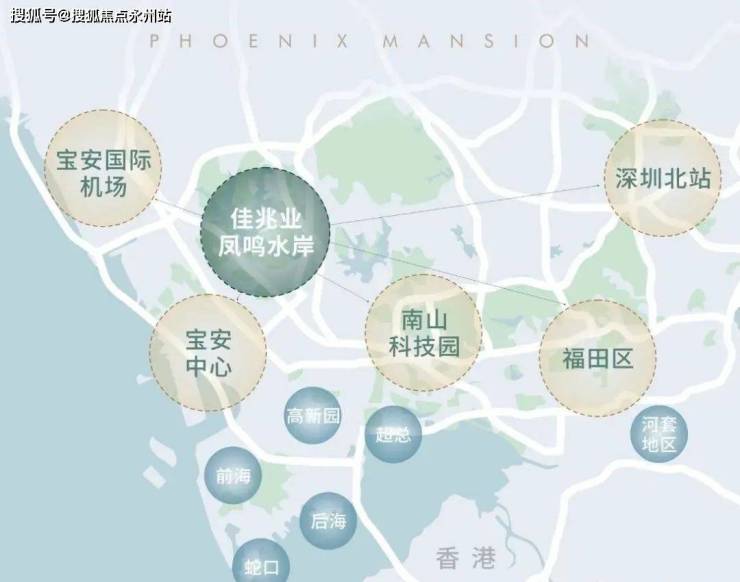 五区叠加之地,前海、宝安双区核心,凤鸣水岸位于宝安、南山、福田、北站商务区、机场&空港商务集群“五中心”交叉片区的核心位置,享受五区发展利好。项目约7KM即达前海中芯,精英汇聚,潜力无限。