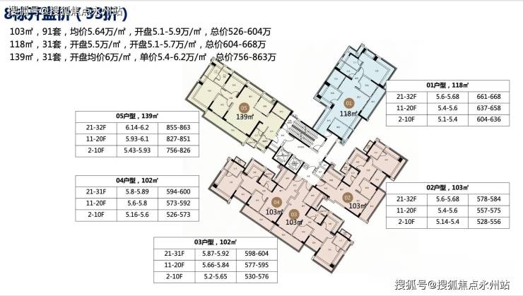 103㎡户型:91 套,折后总价 526-604 万元,单价 5.1-5.9 万元 /㎡。