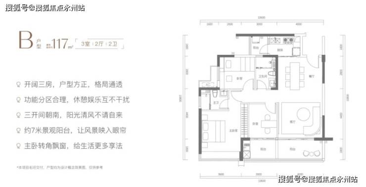 ▌建面约117㎡开阔三房: