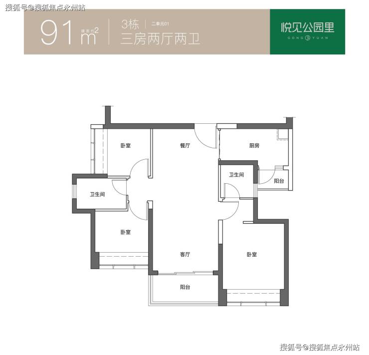 91㎡的3房2厅2卫,折后总价344-356万/套,单价3.78-3.91万/㎡