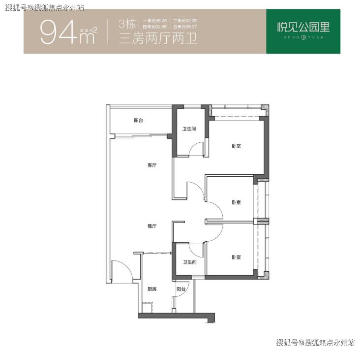 94㎡的3房2厅2卫,折后总价329-357万/套,单价3.5-3.79万/㎡。