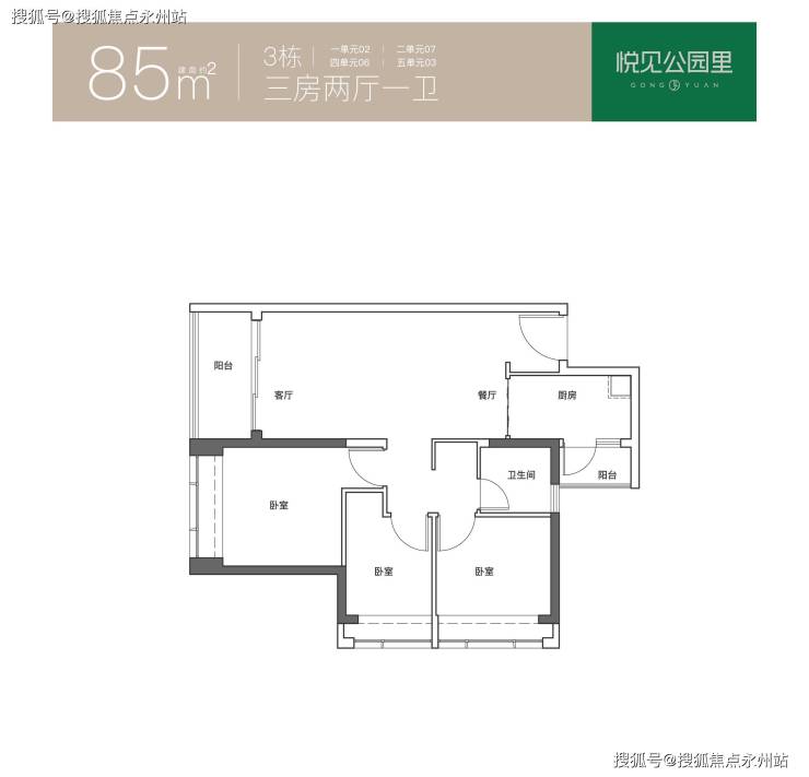 85㎡的3房2厅1卫,折后总价297-319万/套,单价3.49-3.75万/㎡
