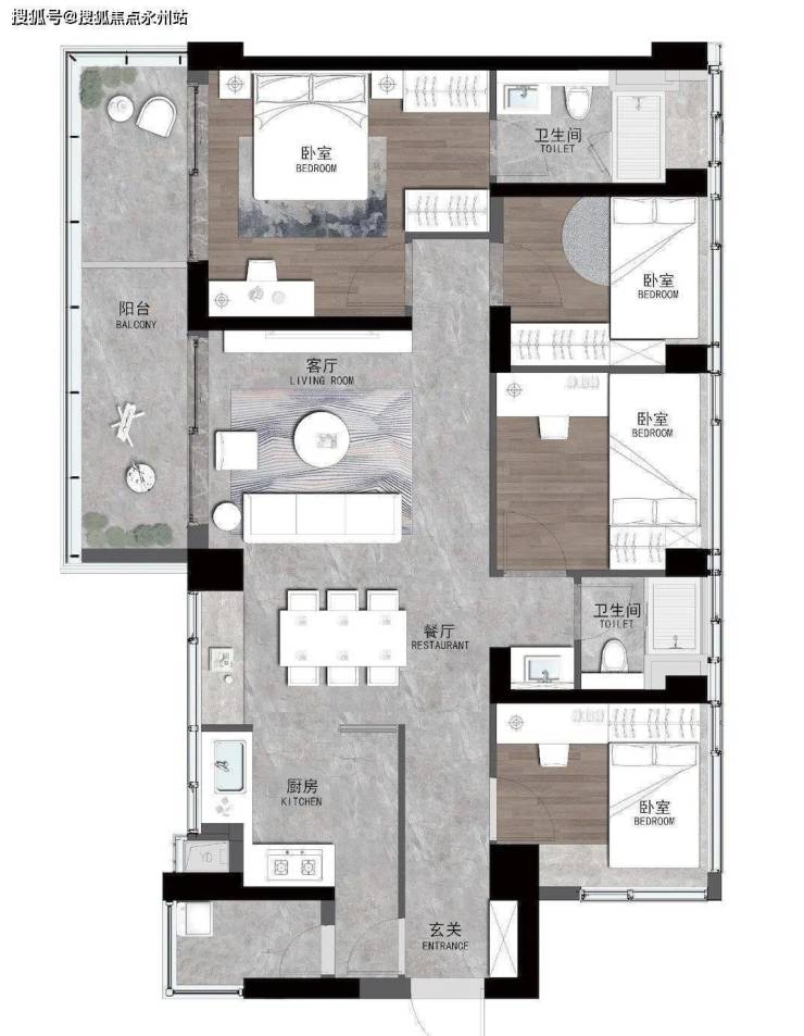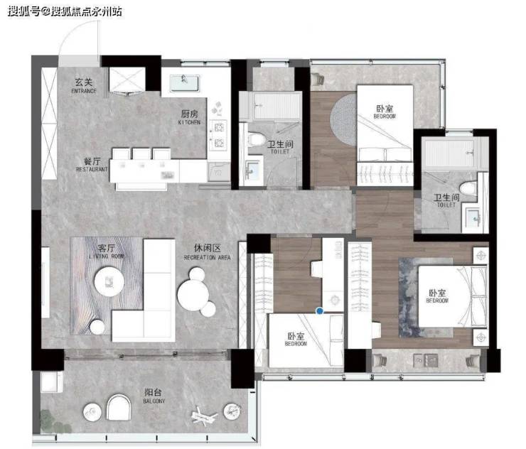110㎡户型亮点解析:
