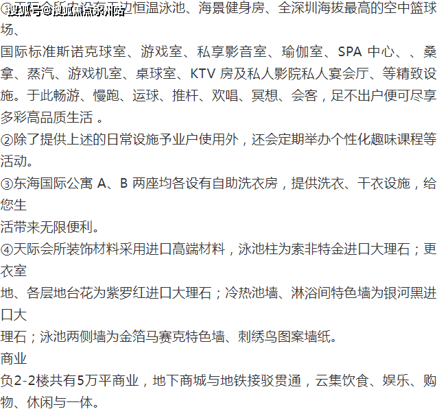 2、以上所发布的关于深圳东海国际公寓户型图与样板间实拍图所示平面仅供参考,具体因楼栋、楼层的差别,局部结构、面积等存在不同,不构成要约内容。户型图与样板间内部实拍图所示家具和电器配置仅供参考,不作为交付标准,最终以买卖合同为准。