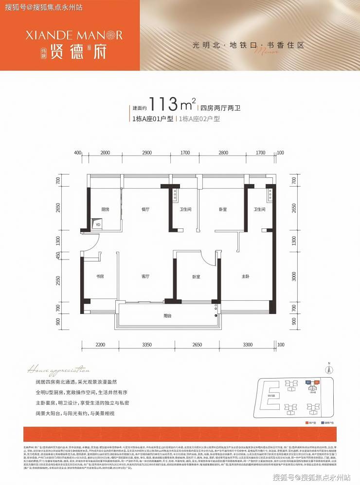 户型详情:主力户型为 91-113㎡精装3-4房,其中 91㎡为正南朝向,113㎡为南北通透。安居房户型包括70㎡两房和90㎡三房。