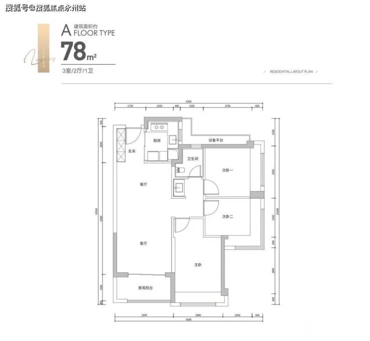 78㎡竖厅三房两厅一卫,这个面积段做三房很有竞争力,东南朝向货量少仅两条腿