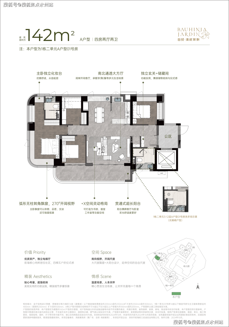 建面约142㎡(4房2厅2卫):分布在1栋2单元(西南朝向)