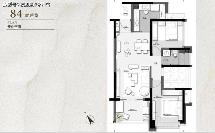 建面约84㎡,原始结构是两房两厅一卫两阳台,奇数层和偶数层都是卧室出阳台,主卧与公卫中间有一块镂空的地方,搭板的话改个三房没啥问题