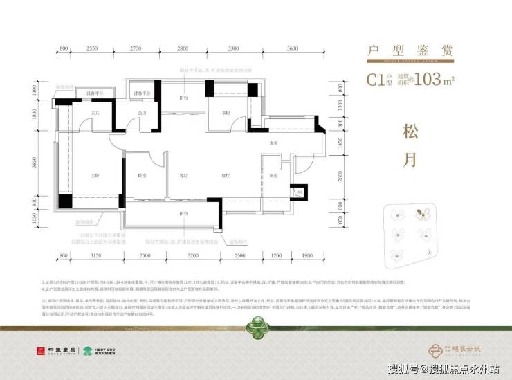 103㎡4房2厅2卫(改善刚需过渡)竖厅格局,LDKB一体化设计,S墙预留冰箱卡槽位,实用性升级。客厅3.5米开间,四开间朝南,主卧17.98㎡,次卧面积均在7.75㎡以上,空间宽敞。L型厨房搭配公卫干湿分离,附带约2㎡设备平台,客厅连接9.6㎡观景大阳台,东南或西南朝向。不含赠送得房率约79.2%,加上赠送后得房率约102.04%,折后总价515-559万/套,适配三口之家或三代同堂。