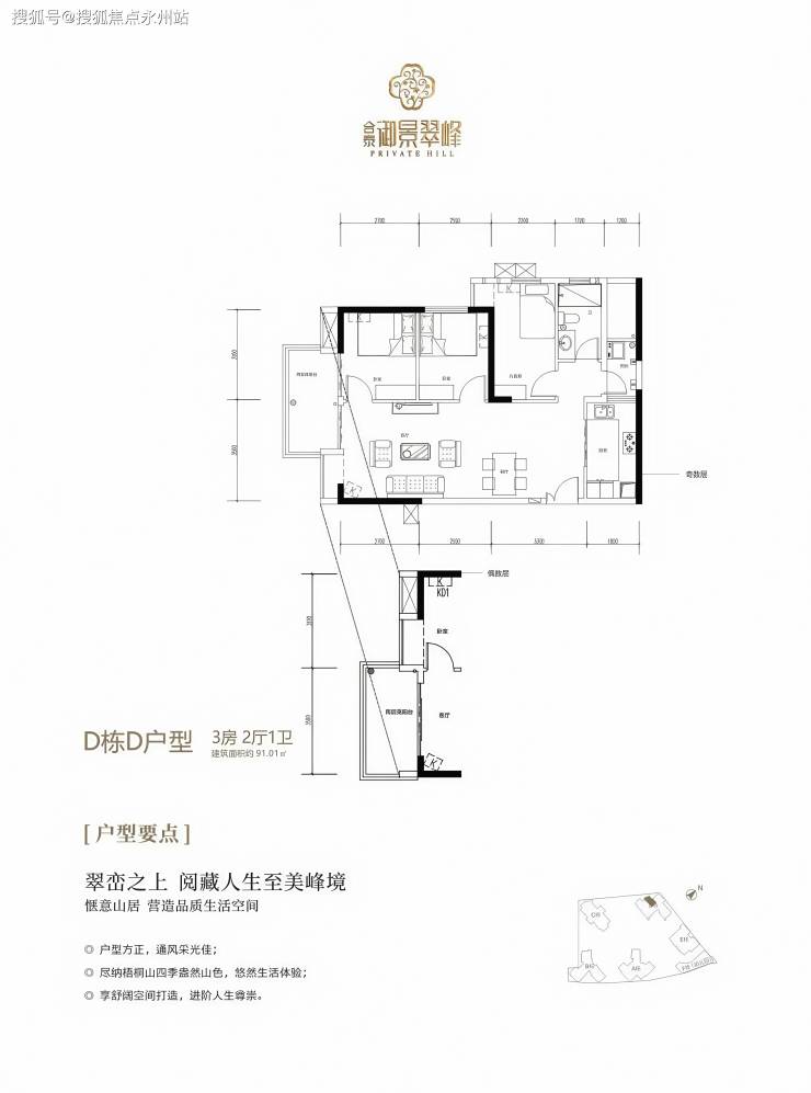户型设计:主打大平层(182-260㎡)及复式(281-344㎡),层高3.1-3.5米,南北通透,赠送面积多(最高送200㎡)