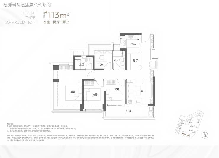 113㎡四房两卫竖厅(03/04户型)传统竖厅格局,客厅连接次卧出6.3米长阳台,主卧与书房飘窗延伸采光,270°观山飘窗为核心亮点,部分房源可无遮挡俯瞰山体。