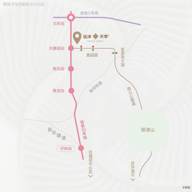 项目家门口就是“福田专线”——10号地铁线“光雅园站”B出口,1站到五和枢纽站,可换乘5号地铁线/深大城际,3站可到龙华深圳北站,3站到福田、4站到南山。