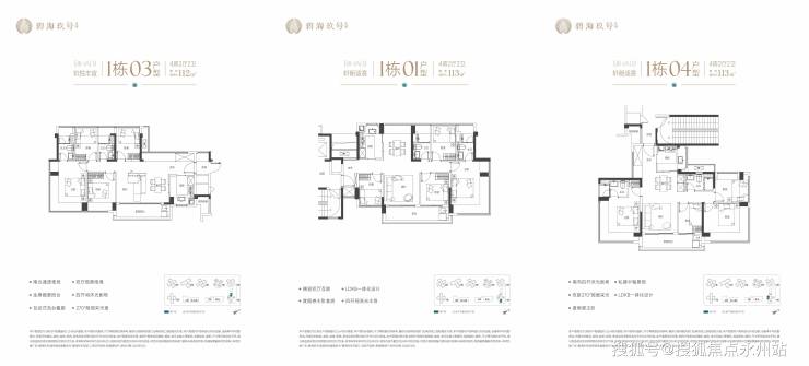 112-113㎡ 4房2卫:主力改善款。提供横厅与竖厅多种布局,餐客厅一体化设计,五开间朝南。大阳台连接客厅与次卧,空间尺度感极佳。折后总价约773万-934万。