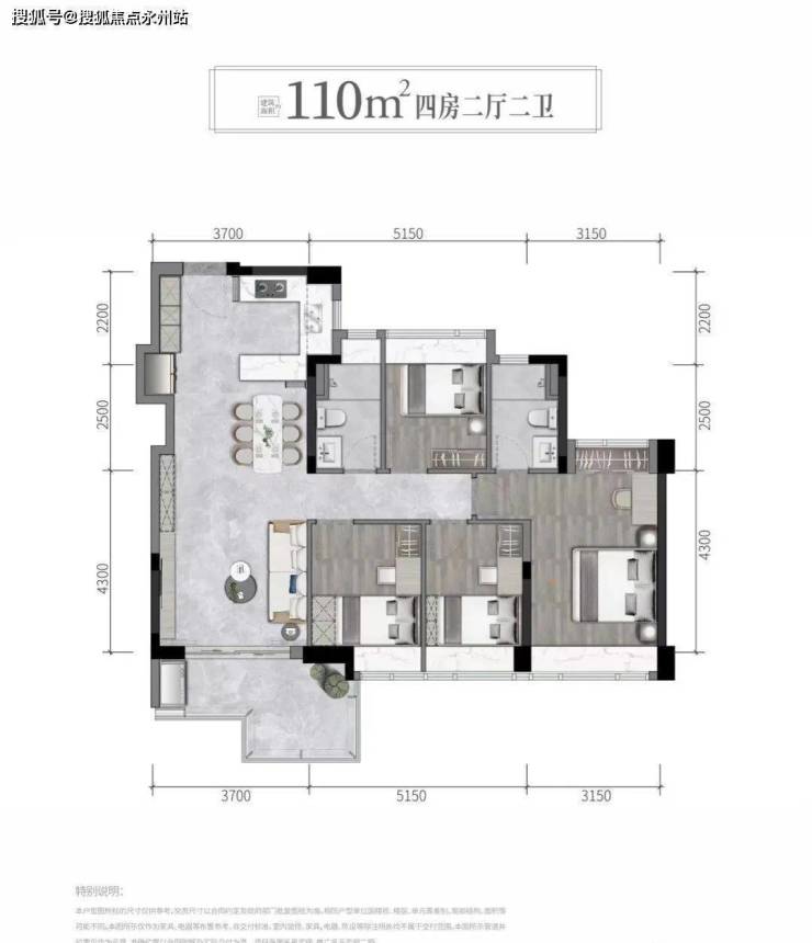 建筑面积约85-110㎡臻智美宅3-4房