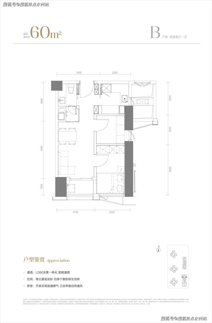 60㎡两房两厅:总价319-323万元,单价约5.3万-5.4万元/㎡,满足小家庭居住需求。