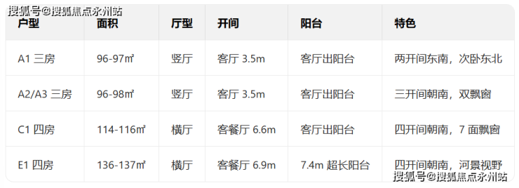 136-137㎡的4房2厅2卫,E1户型,设计的是横厅南北通透格局,客餐厅6.9米开间,LDKB一体化设计,四开间朝南,全屋7面飘窗,主卧套房+步入式衣帽间,3个次卧朝东北向,U型厨房,公卫三段式干湿分离,客厅连接次卧出7.4米长的超大阳台,西南朝向。