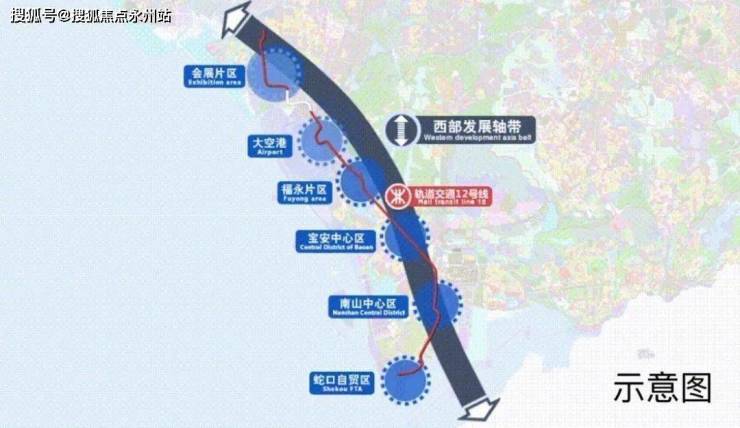 地铁12号线由南向北依次串联蛇口自贸区、南山中心区、前海自贸区、宝安中心区、机场和会展片区,是支撑深圳西部发展轴的轨道交通骨干线。