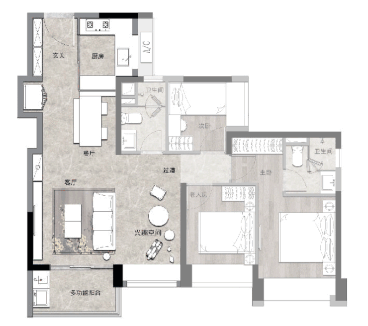 X空间可以开拓为开放式书房,或者改造成家庭影院,还可设置为亲子互动区,家庭人口增多,就直接做房间使用,名副其实的全生命周期户型。