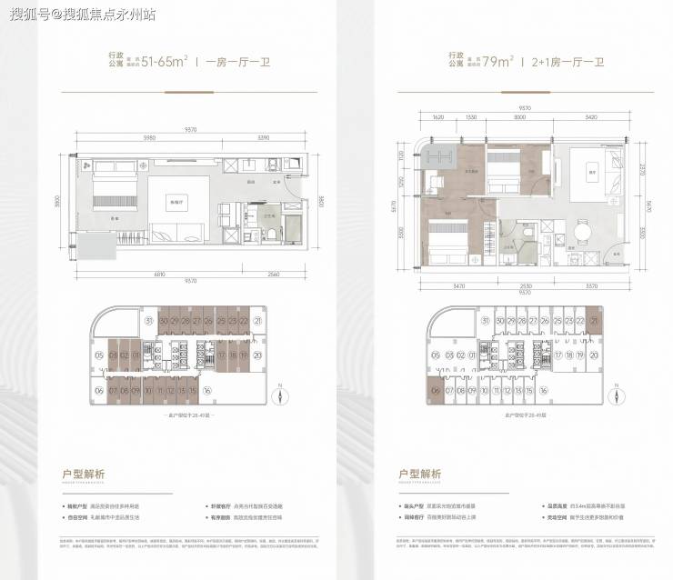 在售户型:51㎡1房1卫,79㎡2+1房1卫103㎡3房1卫,156-165㎡3房2卫