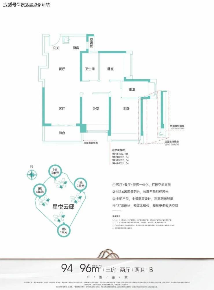 星河·星悦云邸主推户型为建面约95-125㎡3-4房