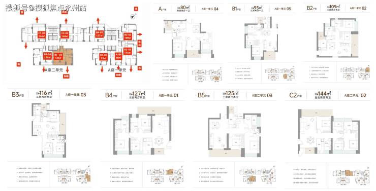 项目主推户型为建面约80-144㎡产品,其中3房为主力户型,有建面约109㎡、116㎡、125㎡、127㎡可选,此外,也有上车小户80㎡2房、95㎡3房1卫单位,及见面约144㎡的改善户型。Vip Tel:400-992-0669 中介勿扰