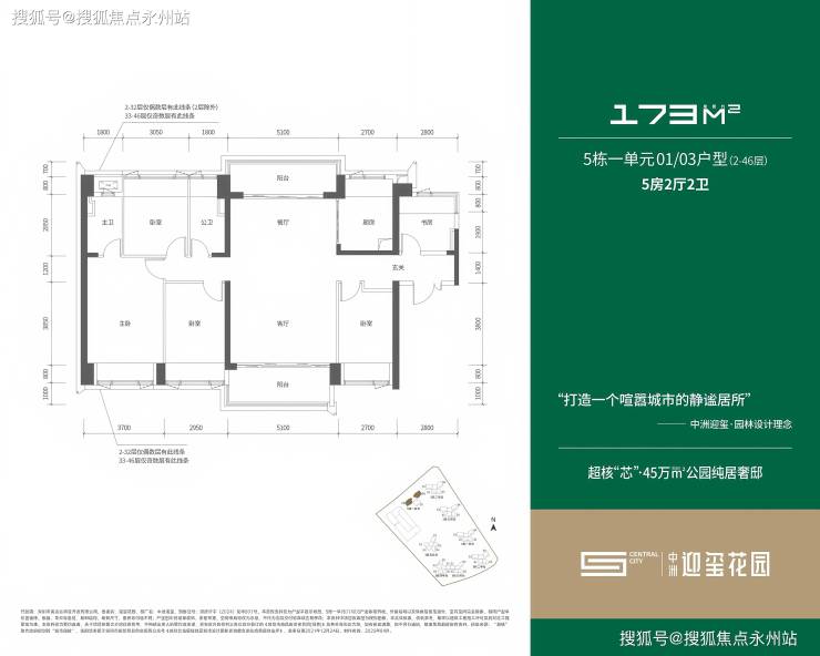 173㎡-5房2厅2卫,折后总价1132-1203万/套,折后单价6.55-6.96万/㎡。
