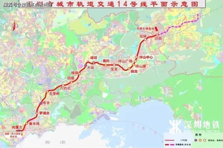 14号地铁线,该线路是从坪山沙田开往福田岗夏北的快速线,设计时速120公里,4站到大运,9站到布吉,10站到罗湖,12站到福田岗厦北,用时43分钟。