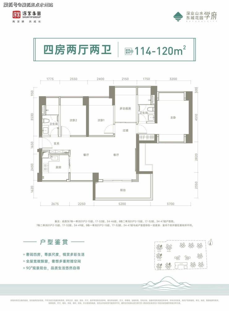 114-120㎡的4房2厅2卫,总价279-338万/套,单价2.41-2.94万/㎡。