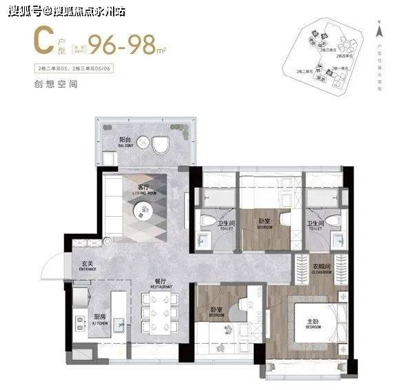 【总层高】一单元3梯5户,42层/二、三单元3梯6户.47层