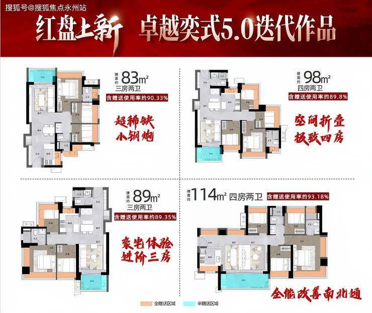 预售房源:共推出311套房源,可售309套,包含83-114㎡的3-4房户型。