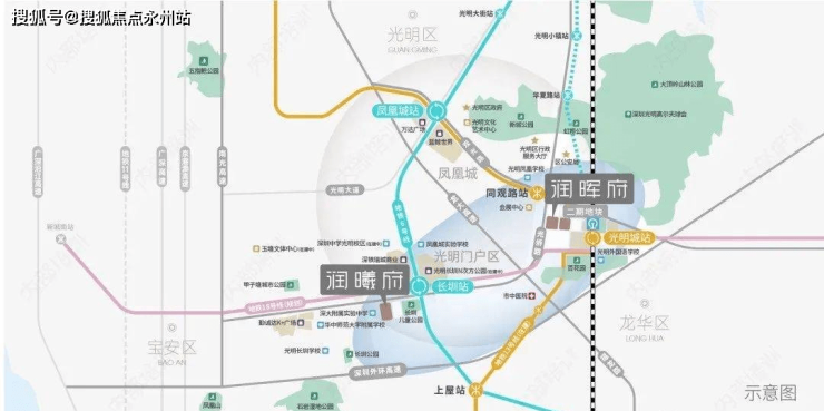 而华润润晖府,距离光明城站直线距离仅约500米。