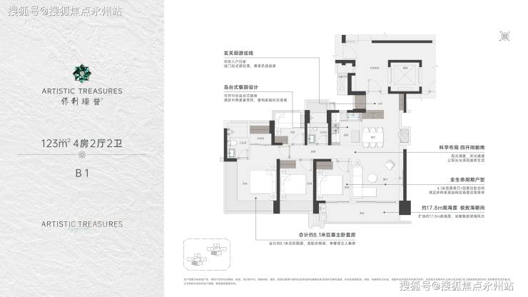 123㎡四房:折后总价1055-1205万元,单价8.57-9.79万元/㎡