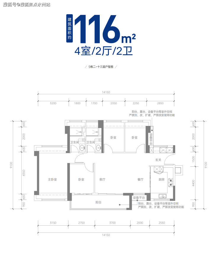 116㎡的4房2厅2卫,折后总价704-848万/套,单价6.06-7.31万/㎡。